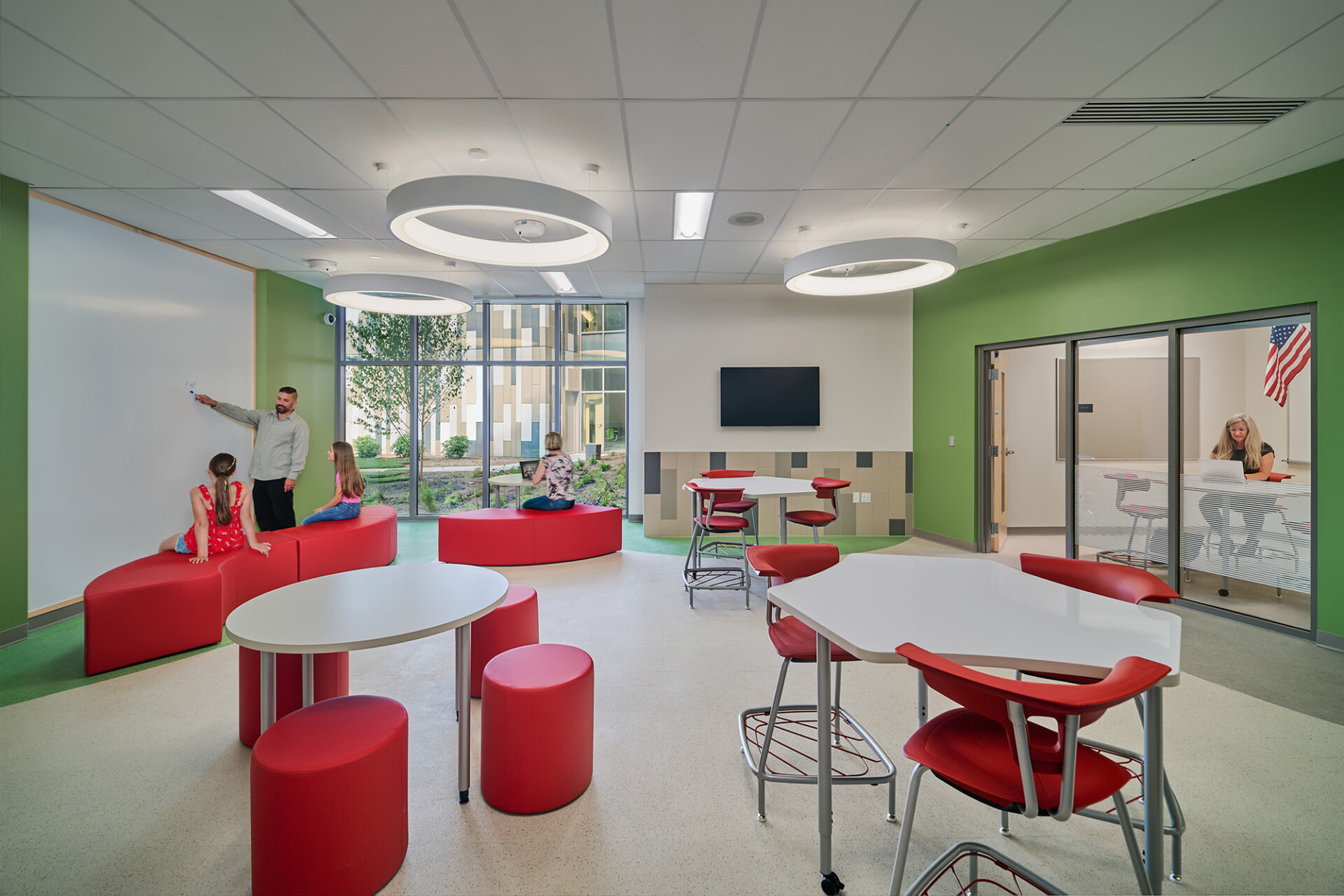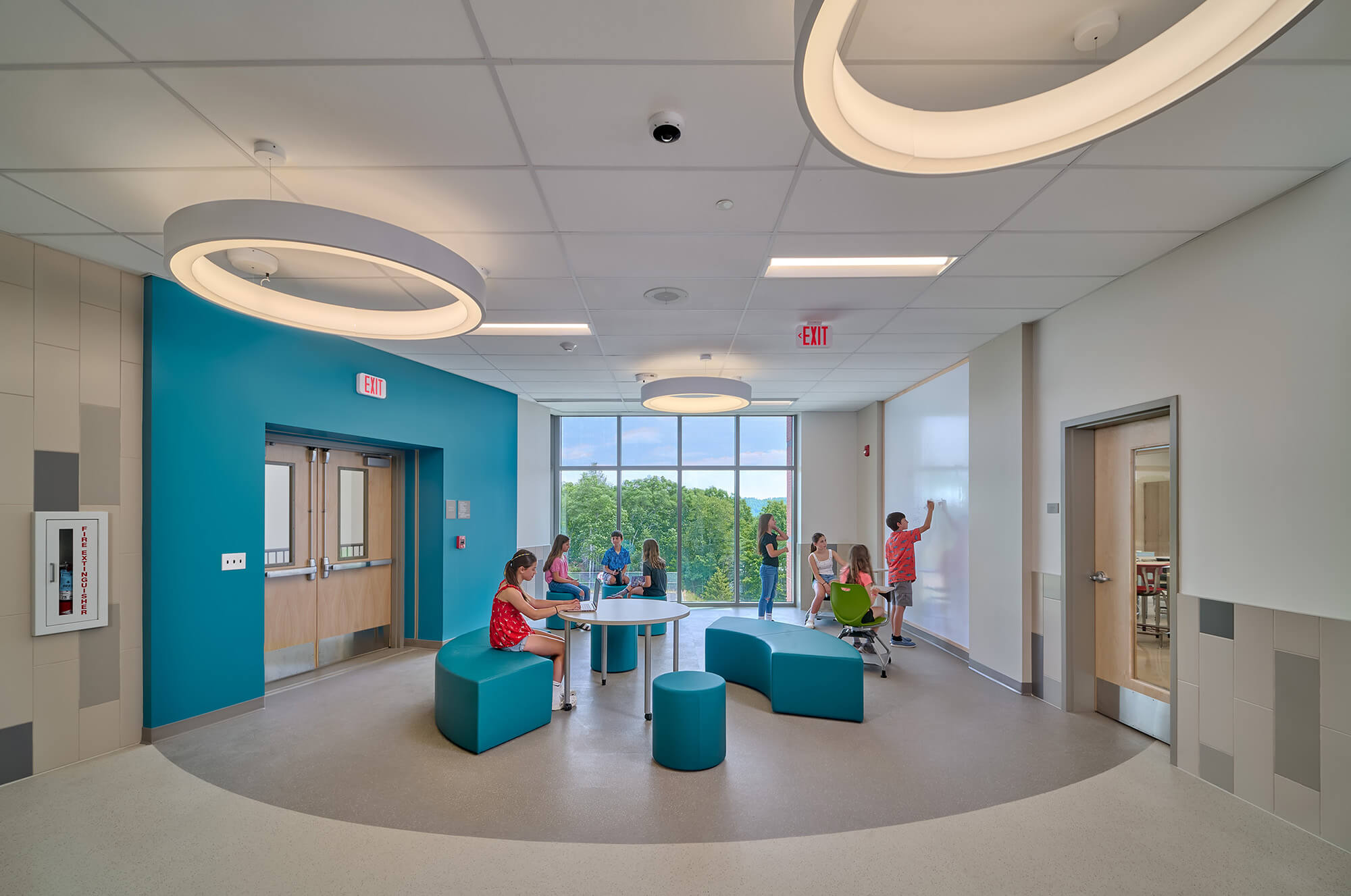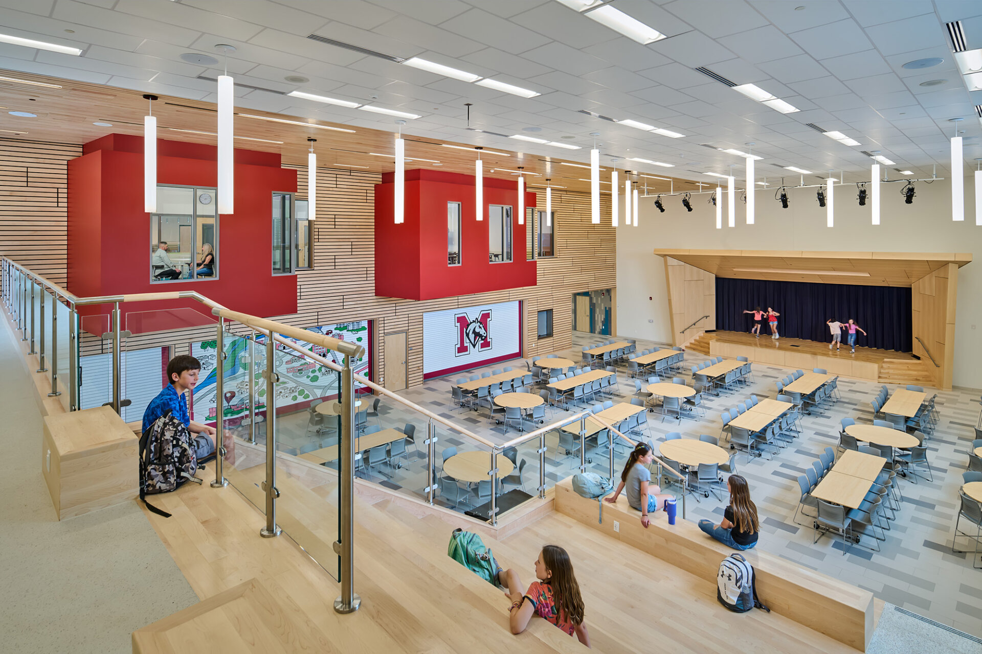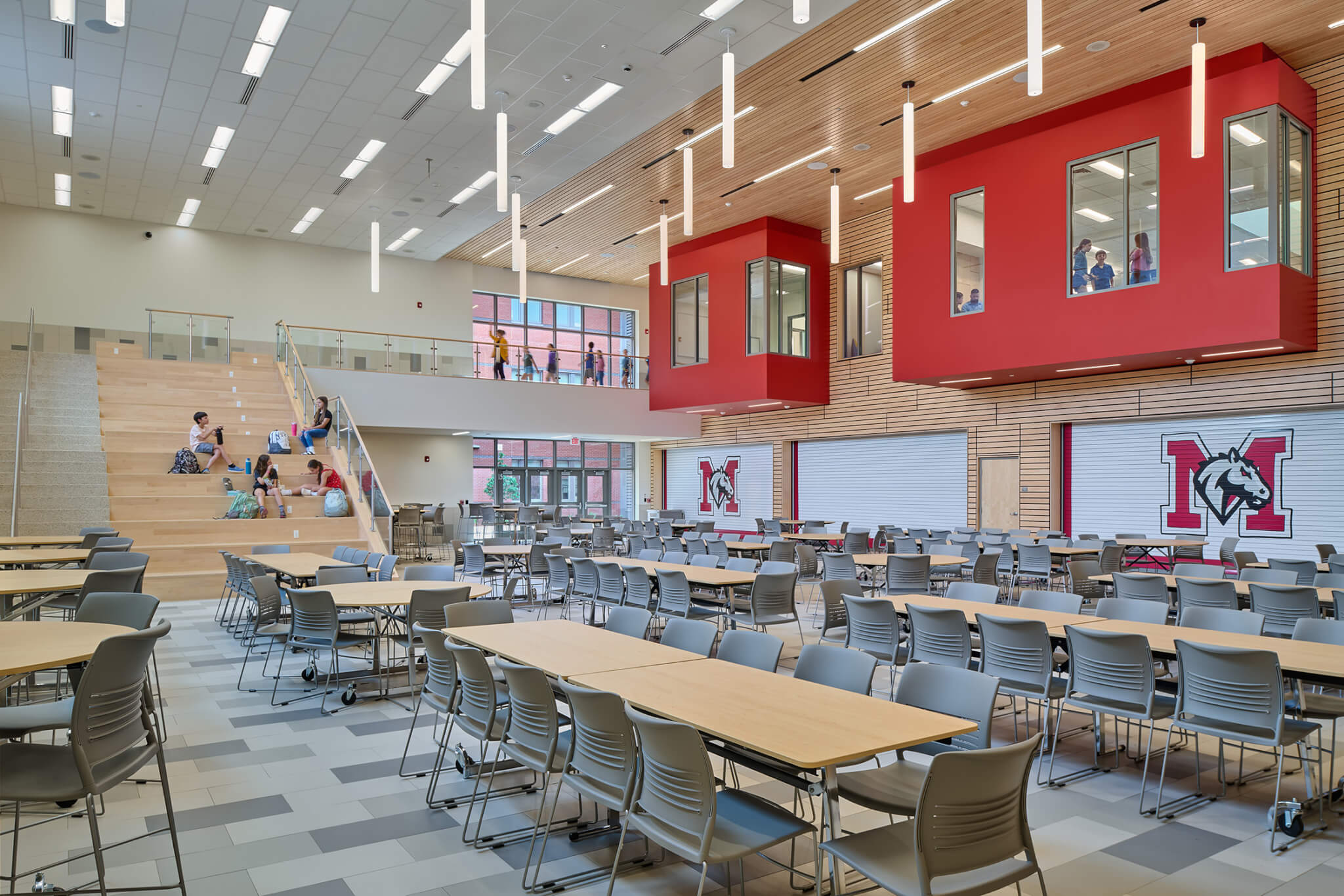 In addition to supporting a middle school social and emotional learning model, the configuration of the new building creates a compact footprint that is not only efficient but reduces distances between classroom villages and other programs including Unified Arts, Physical Education, Cafeteria, and the Library and Learning Commons.